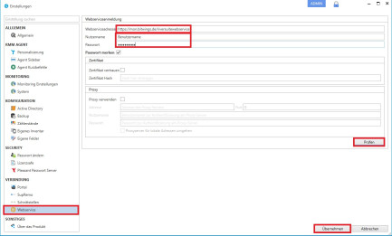 • Navigieren zum Reiter Webservice und Eintragen: